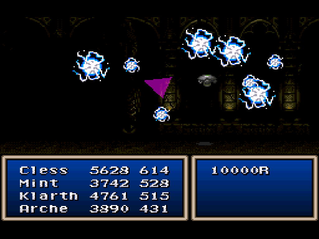 The first few games in the Tales series suffer from an issue I’m glad the developers gradually moved away from, and that issue can be defined ‘Random Battles.’ Of course, being a SNES title, I would not expect that the game contains encounters of the same caliber as Symphonia or Abyss, but the problem lies in the addition of puzzle elements to the dungeons. There is nothing worse than attempting to solve a puzzle and running into an encounter in the middle of the completion of the puzzle. The element of random battles completely removes the player from the mindset of puzzle solving and detracts from the task at hand. In certain rooms, there should be a switch to turn off random battles, as they came up unnecessarily numerous times in the middle of a puzzle. Holy Bottles did not help either, as they only reduced the encounter rate, rather than remove the rate completely. (Volt’s Cavern was definitely the worst perpetrator of this, with movement puzzles and random battles…)